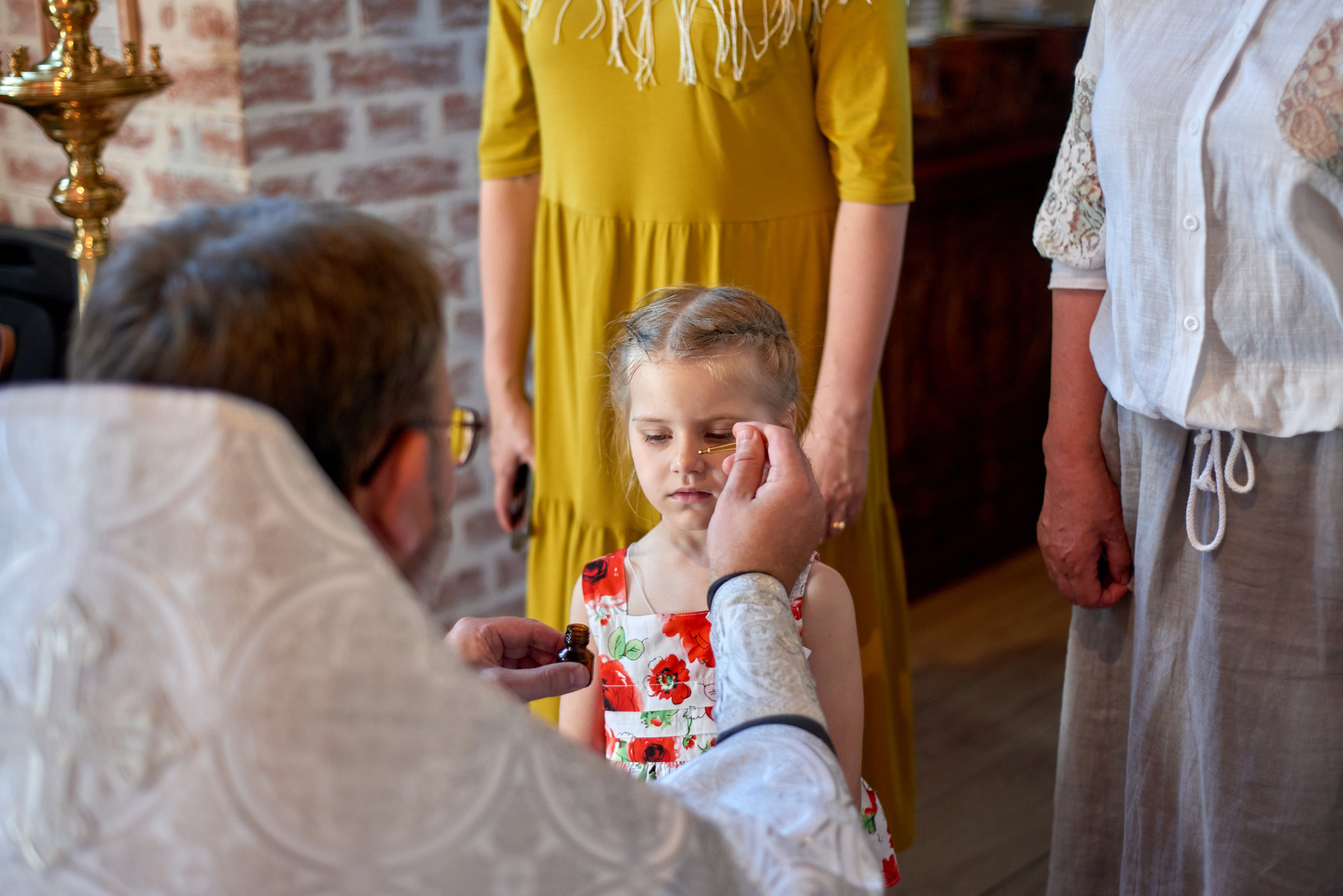 С уважением к атмосфере храма и самому таинству. Стараюсь быть максимально незаметным, не отвлекать и не вмешиваться в происходящее. Хорошо знаю устройство храма, вижу удачные ракурсы для съёмки, знаю особенности освещения в разных условиях и последовательность таинств, где можно находиться фотографу, а где — нет. Благодаря этому съёмка проходит спокойно, без лишней суеты, а вы можете полностью сосредоточиться на важном моменте.